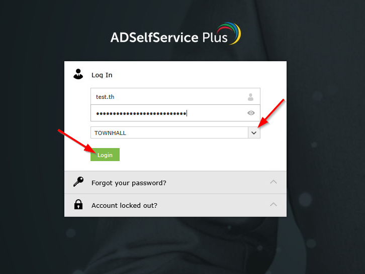 2. Enter your username (typically firstname.lastname) and password. You must select the drop-down and choose the appropriate domain for the Town Hall, Police Department, or Fire Department, then click "Login".